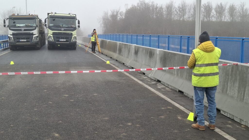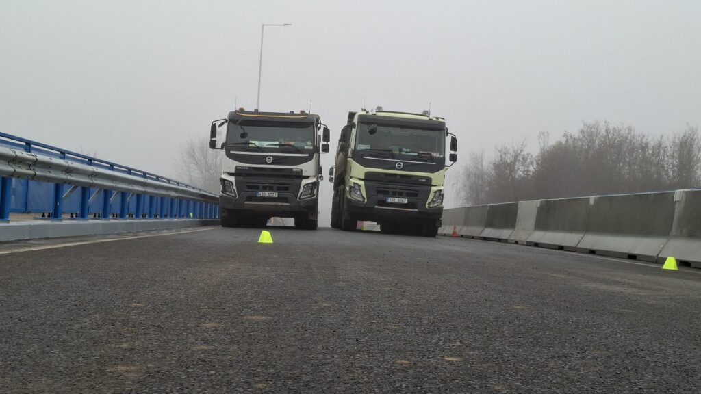 Zítra dopoledne zahájíme provoz na novém mostě, který se klene přes dálnici D11 u Jiren. Dnes dopoledne stavba úspěšně absolvovala statickou zatěžkávací zkoušku. Tu specialisté provedli za pomoci čtyř plně naložených nákladních vozů o celkové hmotnosti 140 tun. Konstrukce mostu se při zátěži chovala lépe, než předpokládala projektová dokumentace.